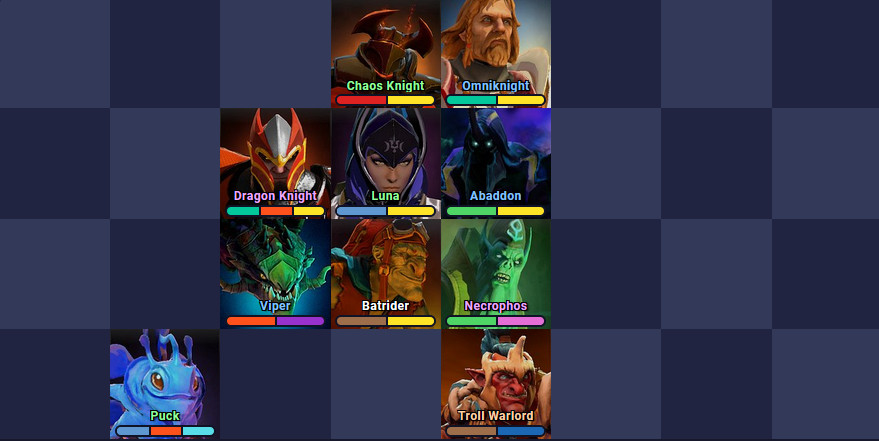 그래서 개인적으로 선호하는 빌드들을 기물들의 우선순위를 상단에서 하단으로 표현하여 소개드립니다.