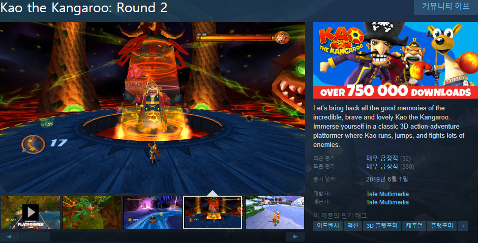 근래에 스팀판이 출시되고 나서 무료로 배포됐었던 '카오 더 캥거루 라운드 2'를 받아 놨다가 문득 생각이 나 최근 플레이해서 클리어했습니다.