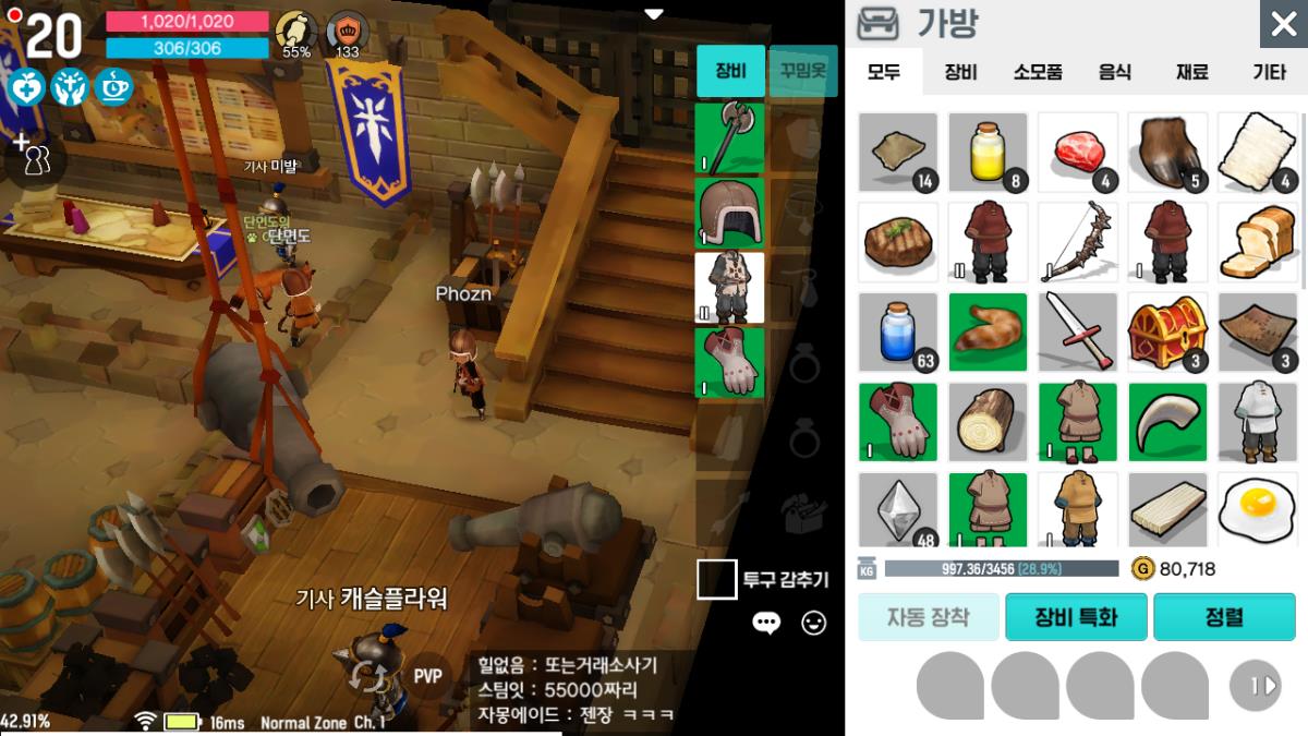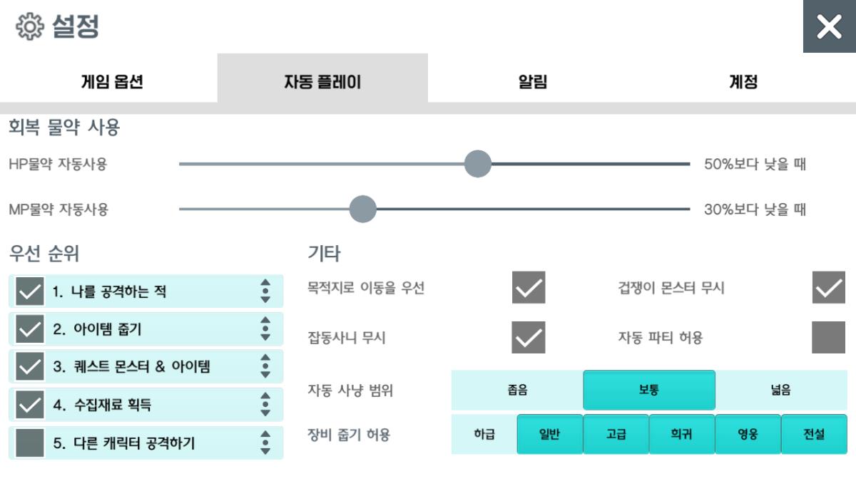 전투는 MMO 장르를 택한것도 있고, 요즘은 다들 오토에 익숙하다보니 오토 기능이 있고, 오토 설정들을 세밀히 조절 가능합니다.