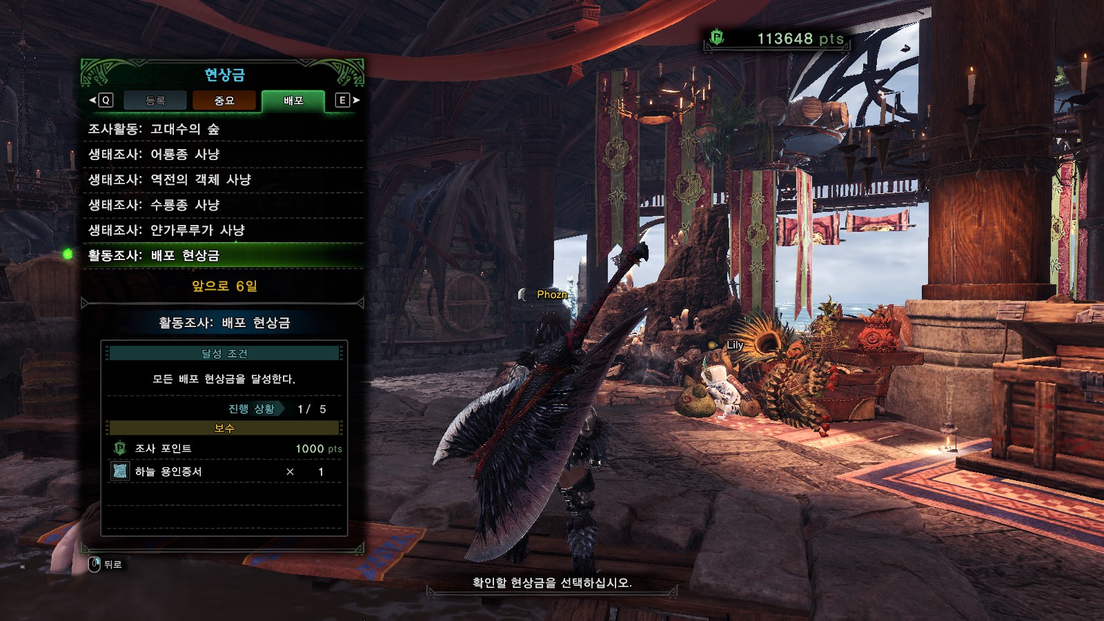 현상금 메뉴도 존재하며 현상금 확인도 가능하며 현상금 완료 기능은 없습니다.