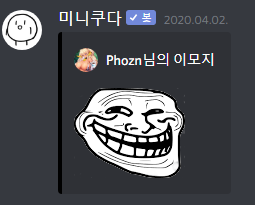 굉장히 단순하면서도 실용적인 기능들이 가득 담긴 봇으로 핵심 기능은 서버 내 등록한 커스텀 이모지들을 사용 시 봇이 확대해서 대신 올려줍니다.