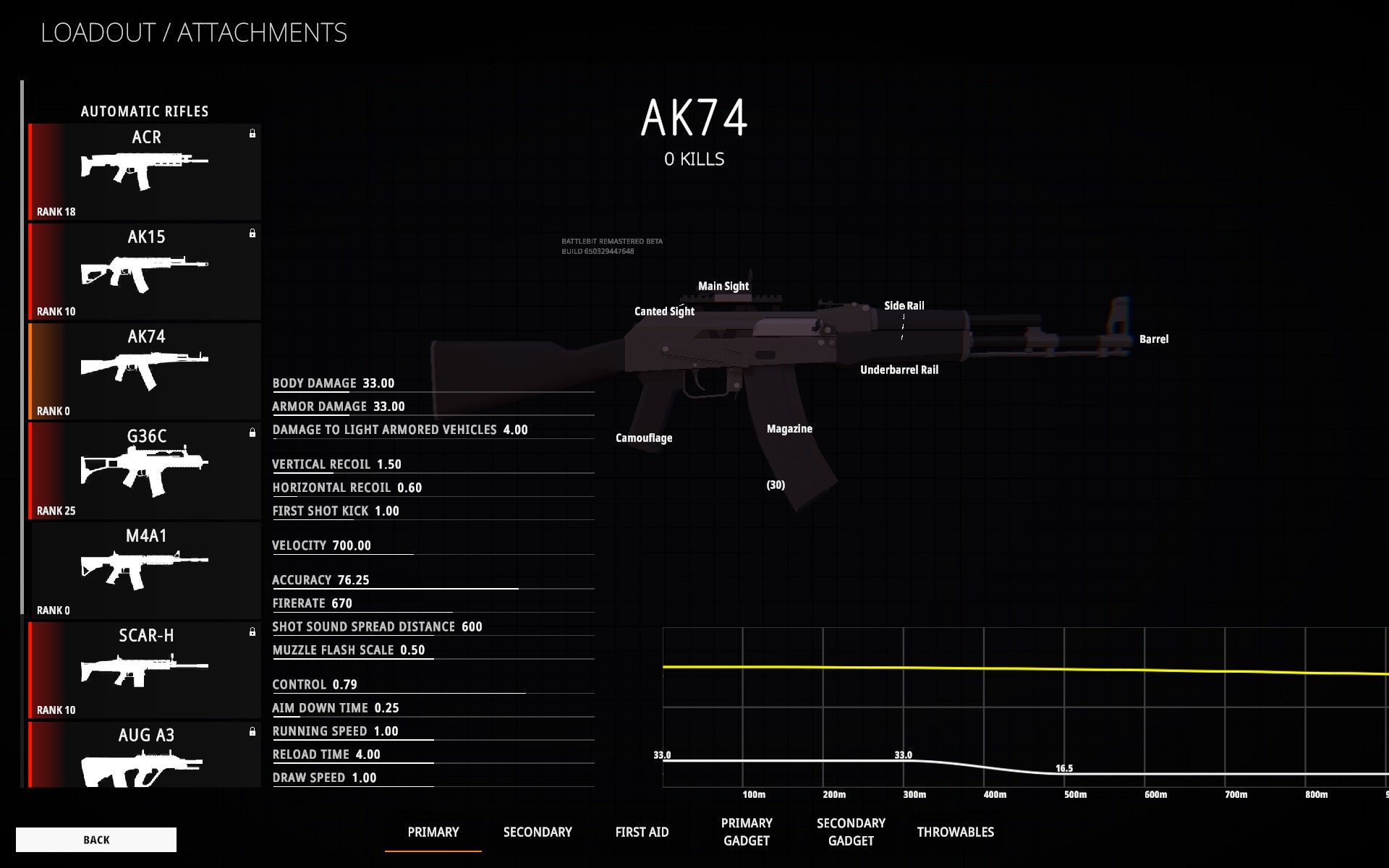 장비 부분은 배틀필드의 킬 해금방식을 그대로 따르고 있으며 특별한 점은 없어 보이지만 그래도 총기별 능력치를 보기 편하게 제공하는 UI는 좋은 것 같습니다.