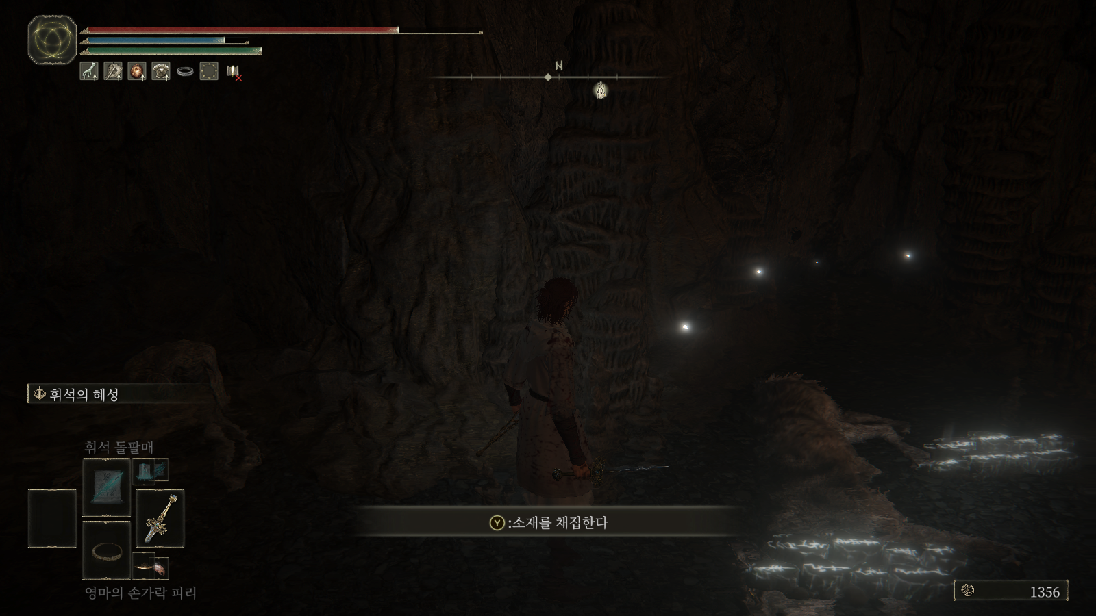 동굴 안으로 들어가면 늑대 몇 마리가 있고 그 안 쪽에 은색 반딧불이 5마리 있습니다.