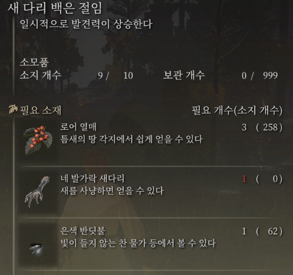 수리나 부엉이들에 비해 훨씬 더 높은 확률로 새다리를 주는 조류이므로 손쉽게 파밍할 수 있습니다.