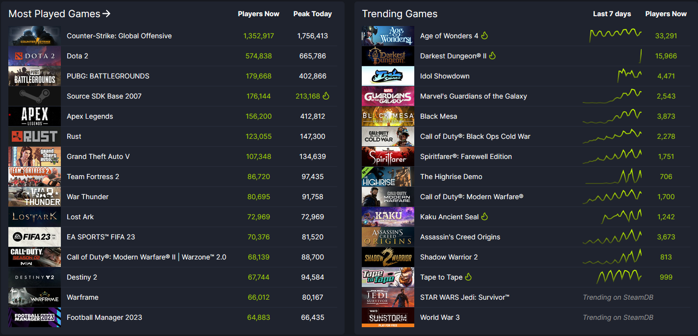 1. steamdb.info 스팀DB는 기본적으로 스팀에 업데이트 되는 모든 게임들의 다양한 정보들을 한 눈에 쉽게 알아보기 좋은 유명 사이트로 최근 유저들의 관심을 끌고있는 게임들을 한 눈에 파악하거나 자신이 좋아하는 게임들의 업데이트 내역, 지역 별 가격들을 알기에 적합한 서드파티 사이트 입니다. 2. steam250.com 스팀250은 이름에서도 알 수 있다 싶이 각종 항목별로 나눈 게임들의 상위 차트들을 확인하기 굉장히 편리한 사이트고, 그 외에도 가격, 순위 변동등을 파악하기에 효율적인 사이트 입니다. 특정 장르의 흐름을 파악하기에는 굉장히 적합해서 유행을 선도하는 장르별 게임들을 파악할 때 추천드립니다.